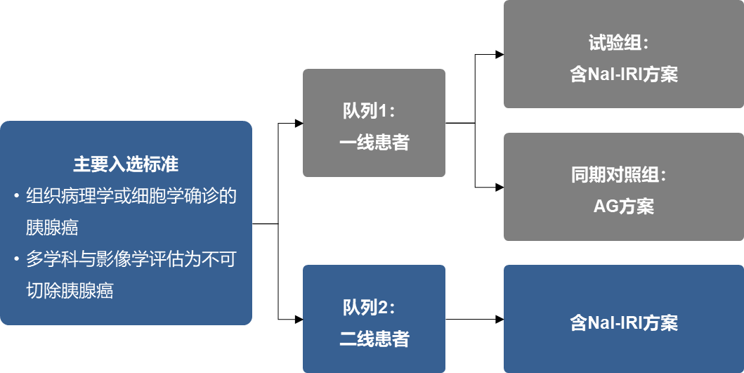 研究设计:本研究为真实世界观察性队列研究,由复旦大学附属肿瘤医院虞先濬教授牵头。队列一观察一线治疗的受试者;队列二观察二线治疗的受试者,纳入接受含伊立替康脂质体方案的人群,不限治疗方案与用药剂量。本次分析队列二的受试者数据。