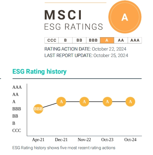 MSCI ESG评级是深受全球投资机构广泛认可的ESG评价体系之一,评级权威度、公信度高,评级结果被国内外投资者广泛应用于投资决策中。esb世博网集团一直秉持可持续发展理念,致力于推动ESG各项实践,本年度再次获评A级,体现了国际资本市场对esb世博网集团管理成果的认可。