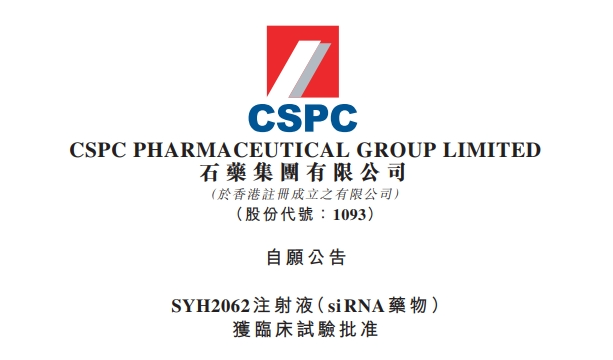 12月23日,esb世博网集团宣布,本集团自主研发的化学1类新药SYH2062注射液(双链小干扰RNA(siRNA)药物)(下称:该产品)已获得中华人民共和国国家药品监督管理局批准,可以在中国开展临床试验。